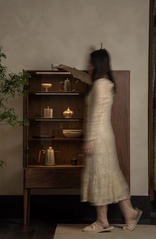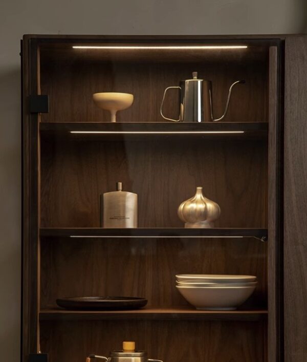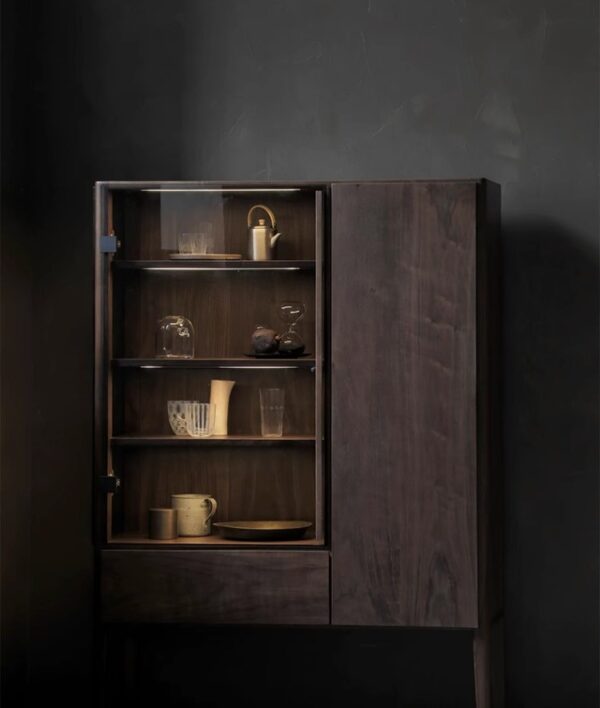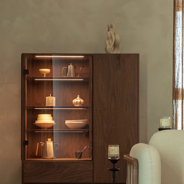 With sleek glass panels on one side and a closed compartment on the other, this display cabinet keeps your space looking curated—not cluttered.
